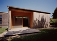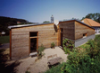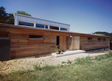 Die reduzierte Nordansicht fasziniert den Betrachter. Beeinflusst von traditionellen Holzbaumethoden gemeinsam mit modifizierten Elementen lokaler Bautradition wurde der Baukörper mit verschieden ausgerichteten Pultdächern ausgestattet.